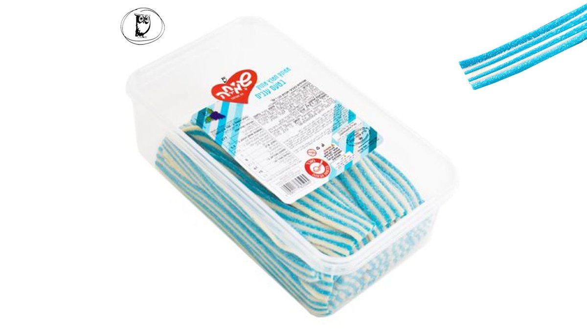 Uploaded ingredient image for ממתק ליקריץ שטיחים בקופסה 1 קג-תכלת לבן בטעם ענבים