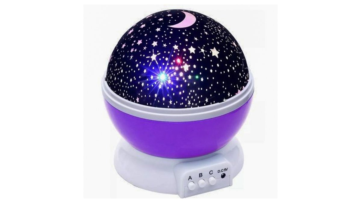 מנורת לילה מקרינה כוכבים וירח בצבע סגול 🟣