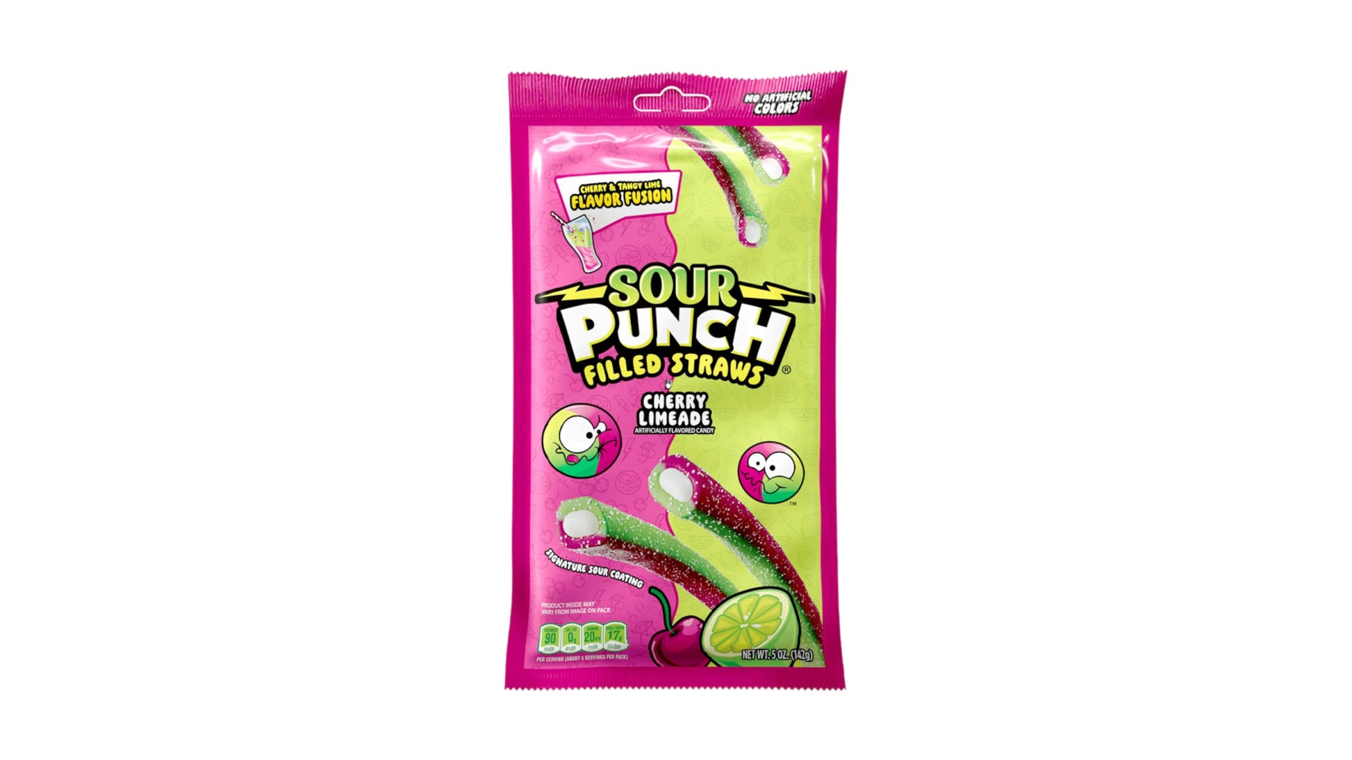 סוכריות חמוצות ממולאות בצורת קשיות מבית Sour Punch – Cherry Limeade. שילוב מתוק־חמוץ של דובדבן וליים במרקם לעיסה רך עם מילוי קרמי לבן וציפוי סוכר חמוץ. חטיף צבעוני ומרענן בטעם אמריקאי קלאסי של לימונדת דובדבן.