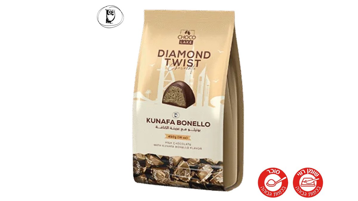 שקית ענק של פרליני שוקולד דובאי עם מילוי בונילו ובצק כנאפה- DIAMOND TWIST