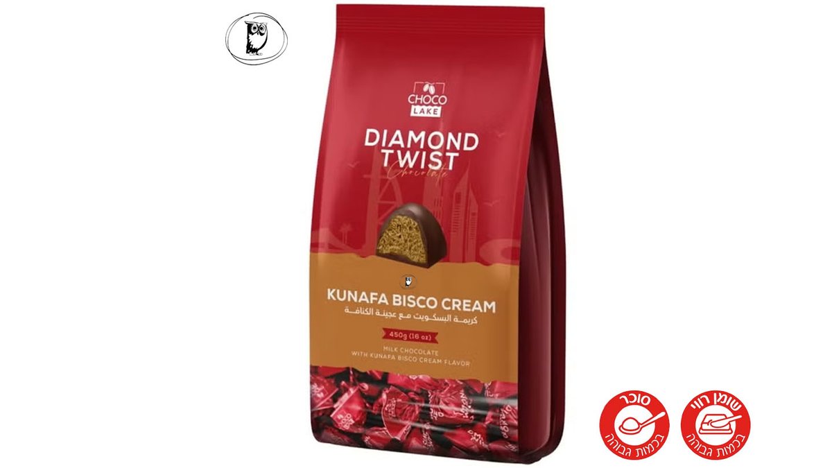 שקית ענק של פרליני שוקולד דובאי עם מילוי ספיקולוס ובצק כנאפה- DIAMOND TWIST