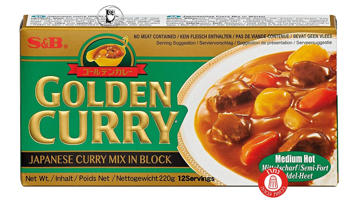 גולדן קארי יפני בטעם פינקנטי. תערובת קארי יפני קלאסית להכנת רוטב קארי עשיר עם ירקות ובשר (לפי בחירה), ללא בשר במוצר עצמו. מתאים ל-12 מנות.